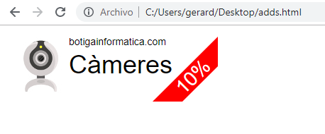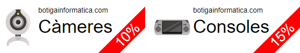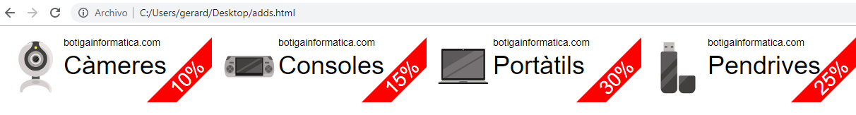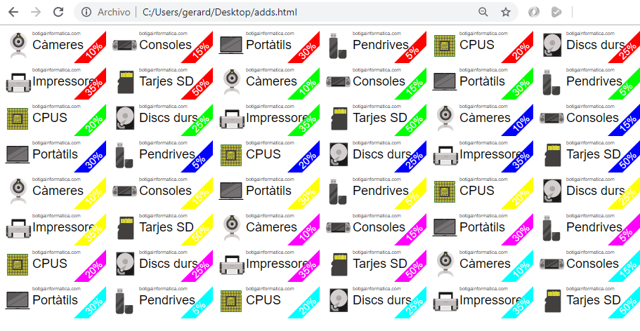Una botiga d'informàtica vol dur a terme una campanya de màrqueting online basada en descomptes dels seus productes. Han realitzat un disseny gràfic dels anuncis per a mostrar-los en una plataforma de publicitat online.