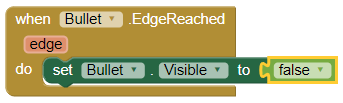 Potser us heu adonat que si us no atinem l'alien, la bala es desplaça a la part superior de la pantalla i hi queda enganxada fins que disparem de nou. Per fer que la bala desaparegui quan arribi a la vora superior del llenç, necessitem el gestor d' esdeveniments
