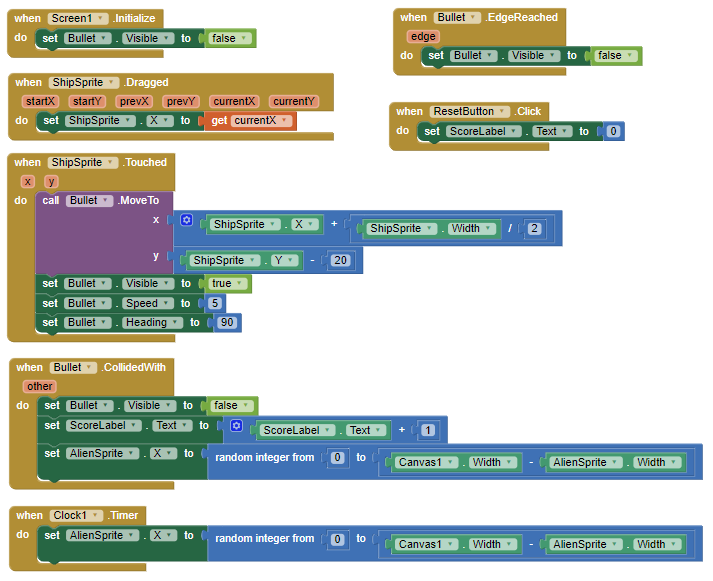 Hi ha diverses funcions que volem que tingui la bala en aquest joc. Volem que dispari des de la nau, xoquin ambl'alien i siga invisible després de la col·lisió i abans de ser disparat.