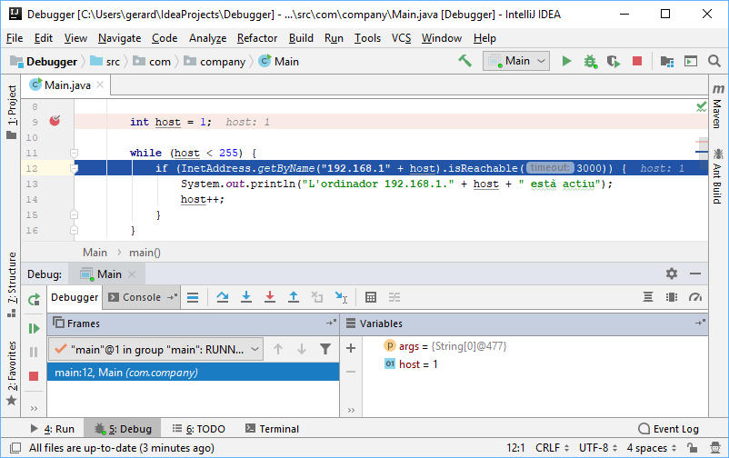 Podem anar avançant l'execució del programa fins que arribi al número de HOST del nostre ordinador (o podríem directament fer que la variable host comenci per aquest número). Però hi ha una altra forma de fer-ho.