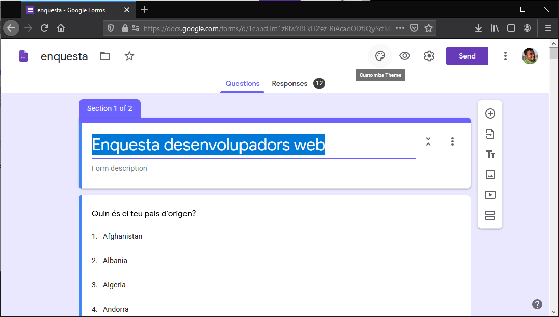 Forms ens permetrà elaborar l'enquesta i obtenir