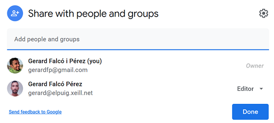 Compartiu aquesta carpeta (amb permís Editor) amb tots els membres de l'equip,