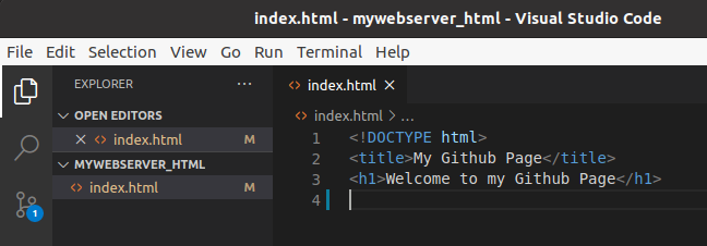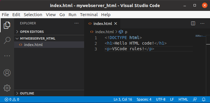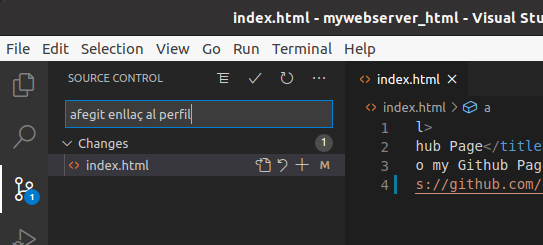 Fes canvis al fitxer index.html (per exemple, pots afegir, amb l'etiqueta <p>, el paràgraf VSCode rules!).