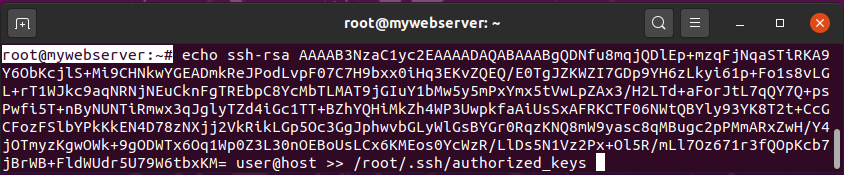 >> /root/.ssh/authorized_keys