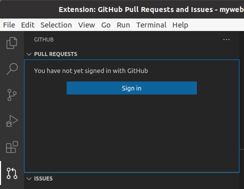 Sign in to use Github Pull Requests and Issues