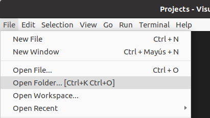 Pots provar-ho. Obre VSCode i selecciona File > Open Folder...: