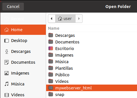Selecciona la carpeta mywebserver_html: