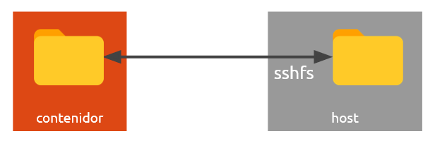 Ara ja podem sincronitzar carpetes entre el host i el contenidor amb sshfs.