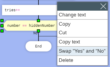 Fes clic-dreta sobre la Decisió i selecciona l'opció "Swap Yes and No":