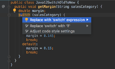 a l'editor situat al costat de la línia actual. Si feu clic en aquesta icona, podeu veure les intent actions disponibles per a aquesta unitat de codi. Les intent actions cobreixen un ampli ventall de situacions, des d'advertiments fins a suggeriments d'optimització. Podeu veure la llista completa d'intensions i desactivar-los a la configuració.