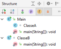 Mostra l'estructura de classes i mètodes del fitxer obert actualment a l'editor