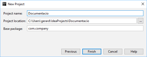Inicia IntelliJ i crea un nou projecte anomenat "Documentacio".