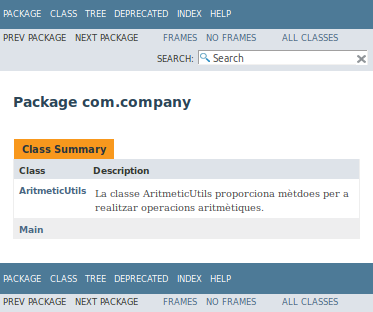 Javadoc és una eina que ve amb el JDK i s'usa per a generar la documentació del codi Java en format HTML des del propi codi.