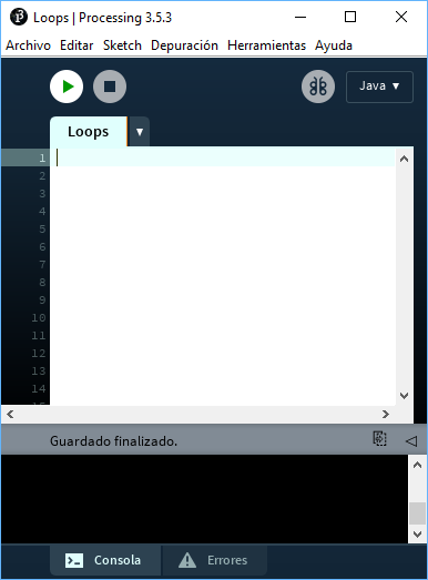 S'obrirà l'entorn de programació de Processing. Anomena i desa el projecte amb el nom