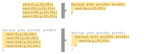 Quan tenim un patró que es repeteix en un programa, on hi només hi ha petites variacions en cada repetició, aquest patró és subceptible de transformar-lo en un loop.