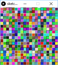 size(200, 200); for(int i=0; i<height; i+=10){ for(int j=0; j<width; j+=10){ fill(random(255), random(255), random(255)); stroke(random(255)); rect(j, i, 10, 10); } }