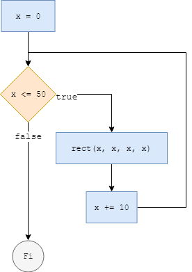 En el següent diagrama de flux podem veure com les dues instruccions que estan dintre del bucle while, es van repetint mentre es compleix la condició