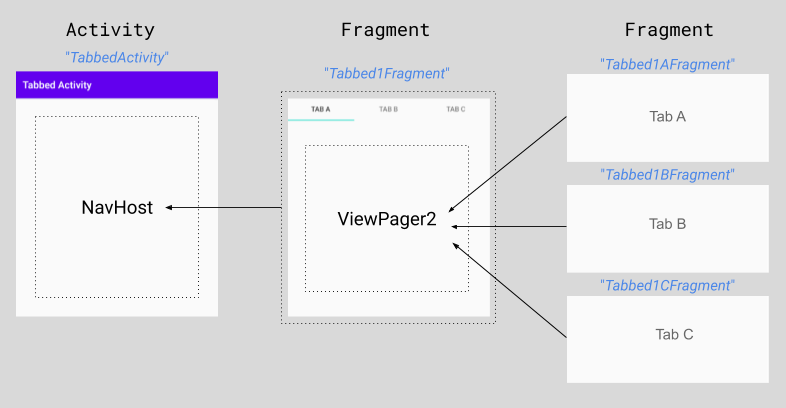 En este NavHostFragment únicamente se mostrará el Tabbed1Fragment.