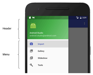 elementos NavigationView, BottomNavigationView, OptionsMenu y