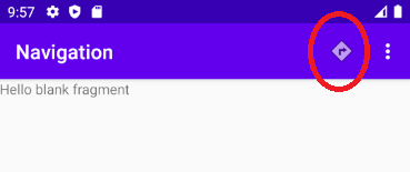 como un icono en la barra. Y también que cuando se navega al tercer fragment, aparece el boton de "atrás"