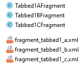Llamaremos a estos fragments: Tabbed1AFragment, Tabbed1BFragment y Tabbed1CFragment.