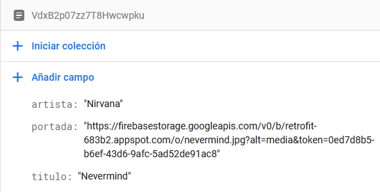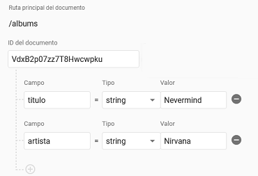 Ahora añadiremos el primer "Documento" de la colección "Albums". Es decir, el primer álbum.