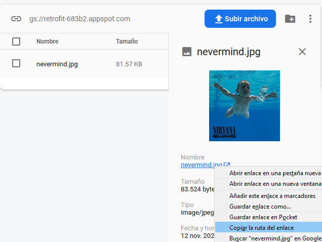 Una vez subida, obtén la URL de descarga en el panel lateral derecho: