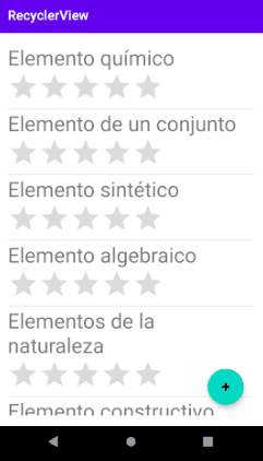 Para ello, lo único que hay que cambiar respecto al RecyclerElementosFragment es la llamada al método