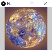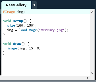 PImage img; void setup() { size(180, 150); img = loadImage("mercury.jpg"); } void draw() { image(img, 15, 0); }