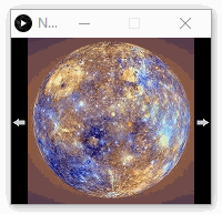 PImage img, mercury, venus, earth, mars, prev, next; void setup() { size(180, 150); mercury = loadImage("mercury.jpg"); venus = loadImage("venus.jpg"); earth = loadImage("earth.jpg"); mars = loadImage("mars.jpg"); prev = loadImage("prev.jpg"); next = loadImage("next.jpg"); img = mercury; } void draw() { image(prev, 0, 0); image(img, 15, 0); image(next, 165, 0); } void mousePressed(){ if(mouseX < 15){ if(img == mercury){ img = mars; } else if(img == venus){ img = mercury; } else if(img == earth){ img = venus; } else if(img == mars){ img = earth; } } else if(mouseX > 165){ if(img == mercury){ img = venus; } else if(img == venus){ img = earth; } else if(img == earth){ img = mars; } else if(img == mars){ img = mercury; } } }